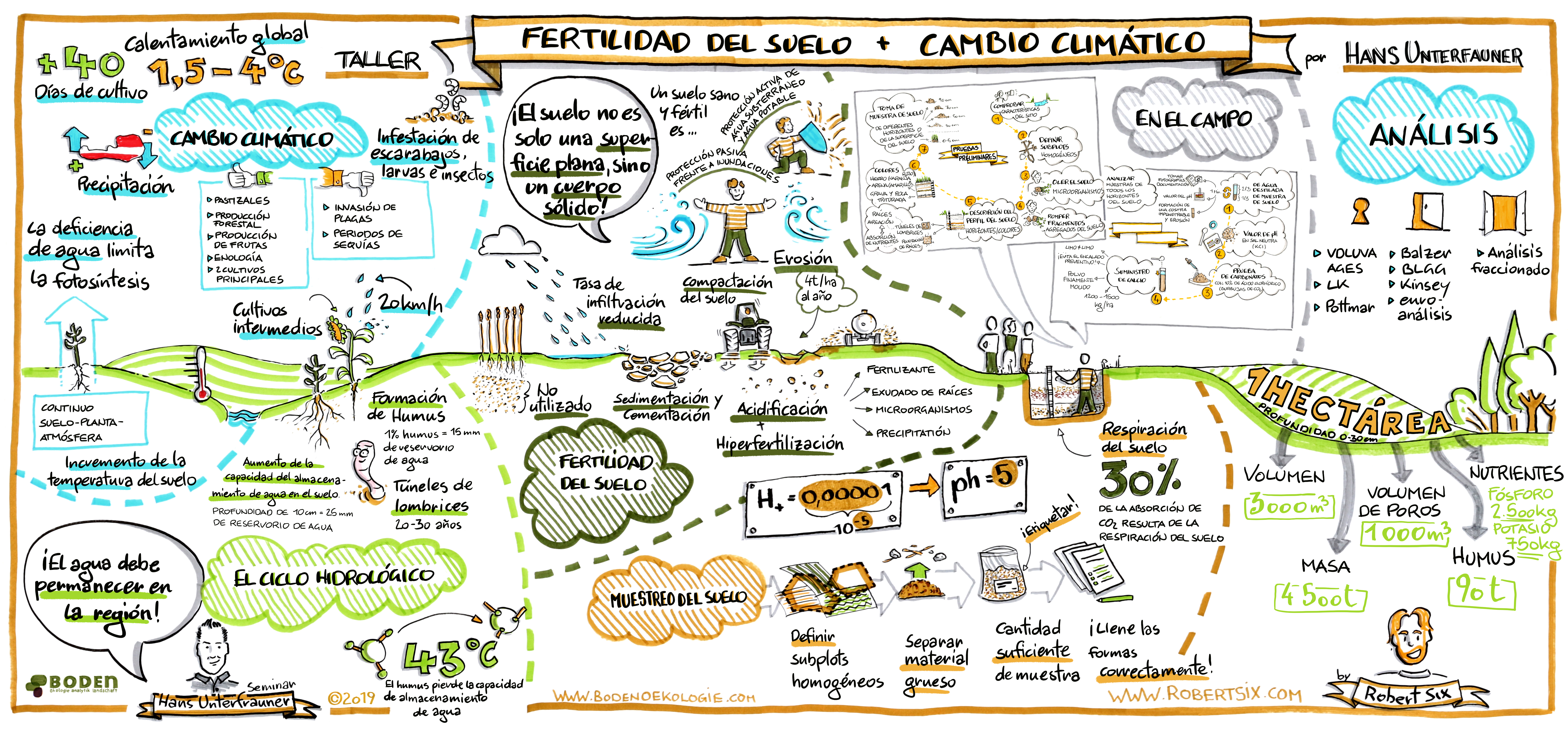 Otra parte importante de nuestro trabajo es la sensibilización acerca de los suelos. Ofrecemos cursos de formación y perfeccionamiento, y desarrollamos continuamente nuevos „instrumentos“ para visualizar la enorme importancia que tiene el suelo para nosotros los humanos y para los ecosistemas. En „Suelos 3D“, por ejemplo, mostramos imágenes espectaculares y únicas del suelo. También hemos puesto a disposición general la transcripción gráfica de un curso impartido por Hans Unterfrauner y Robert Six acerca de la fertilidad de suelos y el cambio climático (el archivo está en formato jpg). Asimismo, hemos elaborado los temas „Cómo tomar una muestra“, „Nutrientes“, „Fósforo“ y „Sistemas reguladores“ de tal manera que se puedan entender fácilmente y los hemos imprimido en posavasos de cerveza.